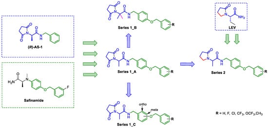 - Park, K.D.; Yang, X.-F.; Dustrude, E.T.; Wang, Y.; Ripsch, M.S.; White, F.A.; Khanna, R.; Kohn, H. Chimeric Agents Derived from the Functionalized Amino Acid, Lacosamide, and the α-Aminoamide, Safinamide: Evaluation of Their Inhibitory Actions on Voltage-Gated Sodium Channels, and Antiseizure and Antinociception Activities and Comparison with Lacosamide and Safinamide. ACS Chem. Neurosci. 2015, 6, 316–330. [Google Scholar] [CrossRef] [PubMed]