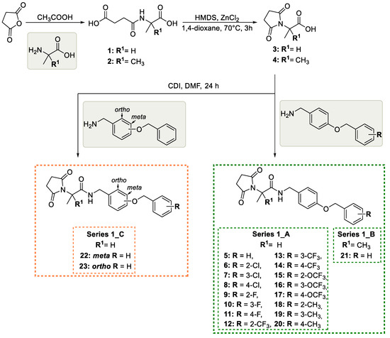 3.1.3. General Method for the Preparation of the Final Compounds 5–23