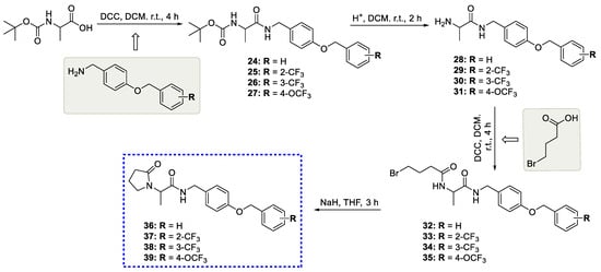 3.1.6. Synthetic Procedure for Bromobutanamide 32–35