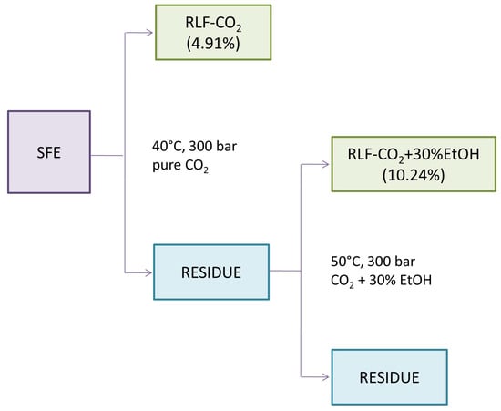 | RLF-CO2 + 30%EtOH | 23.75 ± 1.44 | 0.50 ± 0.02 | 2.36 ± 0.09 | 338.99 ± 8.6 |