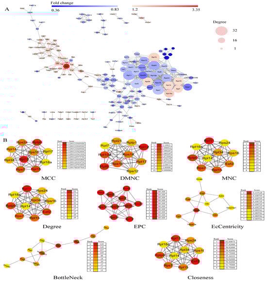 2.6. Protein–Protein Interaction (PPI) Network Construction and Hub Genes Extraction
