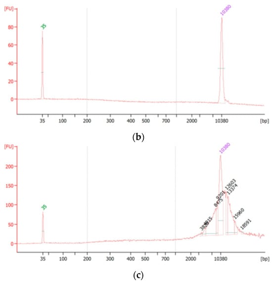 Qubit fluorometer 3.0 (Invitrogen, Waltham, MA, USA) analysis was performed to measure the genomic DNA concentration. A Qubit 1x dsDNA HS (high sensitivity, 0.2 to 100 ng) Assay Kit (Invitrogen, Waltham, MA, USA) was used with a Qubit 3.0 fluorometer according to the manufacturer’s instructions; a sample volume of 1 μL was added to 199 μL of a Qubit working solution before measurement.