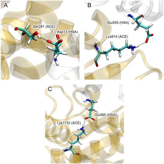 2.2. Molecular Dynamics of HSA–ACE Complexes