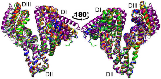 - Humphrey, W.; Dalke, A.; Schulten, K. VMD: Visual molecular dynamics. J. Mol. Graph. 1996, 14, 33–38. [Google Scholar] [CrossRef]