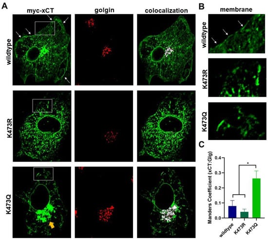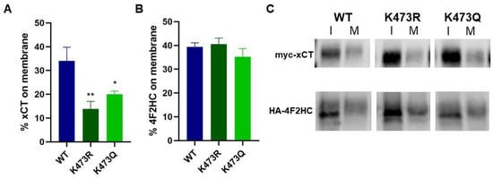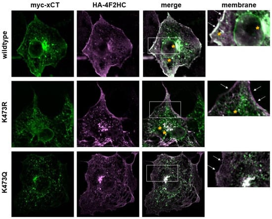 2.2. K473R Affects xCT Localization to the Plasma Membrane