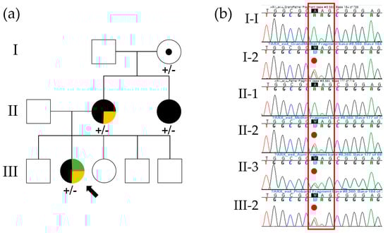 | Grandmother (I-2) | Mother (II-2) | Aunt (II-3) | The Proband (III-2) | |