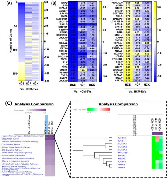 | HCM-EV | COL6A1, COL6A2, COL6A3, MMP1, MMP2, TIMP1, TIMP2 CXCL6, CXCL12 | Fibrosis Pathway |