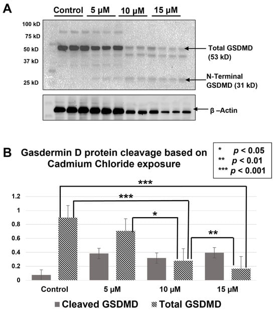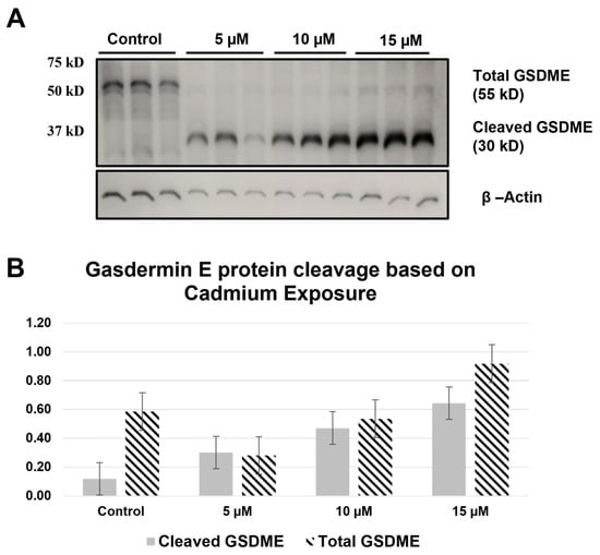 2.2. GSDME and GSDMD Are Cleaved during Cd Exposure