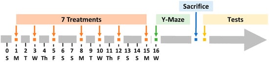 - Prieur, E.A.K.; Jadavji, N.M. Assessing Spatial Working Memory Using the Spontaneous Alternation Y-maze Test in Aged Male Mice. Bio-Protoc. 2019, 9, e3162. [Google Scholar] [CrossRef]