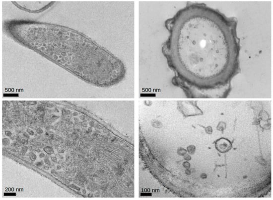 To evaluate the Aspergillus flavus for the presence of mycoviruses, the culture’s fungal growth and supernatant were analyzed for viral contents by electron microscopy. The culture-grown organism was fixed in glutaraldehyde and osmium tetroxide. Before transmission electron microscopy observation, this was placed into resin blocks suitable for ultramicrotomy sectioning at 70 nm, collected on copper grids, and contrast-enhanced with uranyl acetate.
