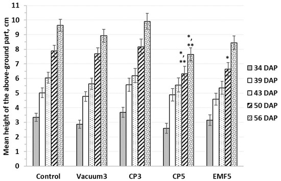 - Ivankov, A.; Nauciene, Z.; Degutyte-Fomins, L.; Zukiene, R.; Januskaitiene, I.; Malakauskiene, A.; Jakstas, V.; Ivanauskas, L.; Romanovskaja, D.; Slepetiene, A.; et al. Changes in agricultural performance of common buckwheat induced by seed treatment with cold plasma and electromagnetic field. Appl. Sci. 2021, 11, 4391. [Google Scholar] [CrossRef]