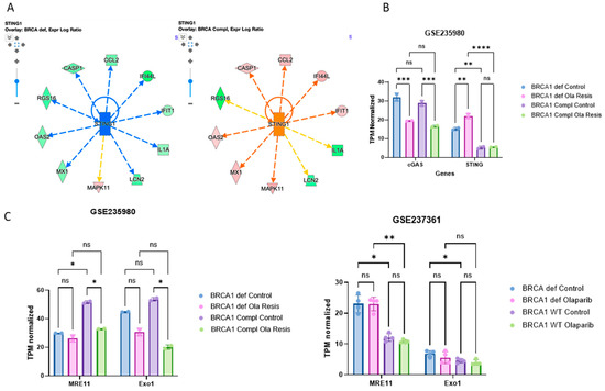 2.3. STING Response to Olaparib Requires BRCA1 but cGAS Downregulation Does Not