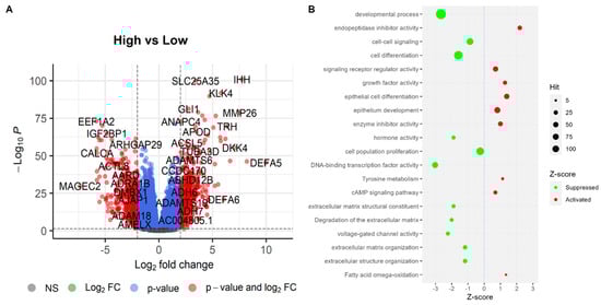 The genes that had zero counts across the samples were removed from the analysis. Later, the differential expression analysis was performed using DESeq2 based on the Wald test scores followed by the Benjamini–Hochberg procedure for removing false positives in the data []. The genes that had an absolute fold change (FC) of ≥2 and an adjusted p-value of ≤0.05 were screened as differentially expressed genes (DEGs). The heatmap and volcano plots representing DEGs were created using R packages like pheatmap and EnhancedVolcano, respectively.