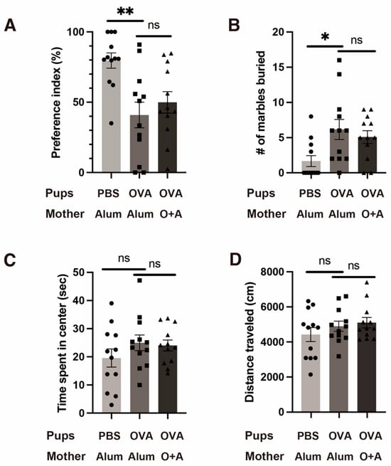 2.2. Mild Allergy-Induced ASD-like Behavioral Changes in the Offspring