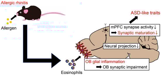Tanaka, E.; Yamasaki, R.; Saitoh, B.-y.; Abdelhadi, A.; Nagata, S.; Yoshidomi, S.; Inoue, Y.; Matsumoto, K.; Kira, J.-i.; Isobe, N. Postnatal Allergic Inhalation Induces Glial Inflammation in the Olfactory Bulb and Leads to Autism-Like Traits in Mice. Int. J. Mol. Sci. 2024, 25, 10464. https://doi.org/10.3390/ijms251910464