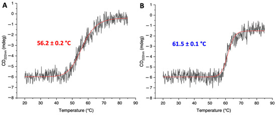 - Greenfield, N.J. Using Circular Dichroism Collected as a Function of Temperature to Determine the Thermodynamics of Protein Unfolding and Binding Interactions. Nat. Protoc. 2006, 1, 2527–2535. [Google Scholar] [CrossRef]