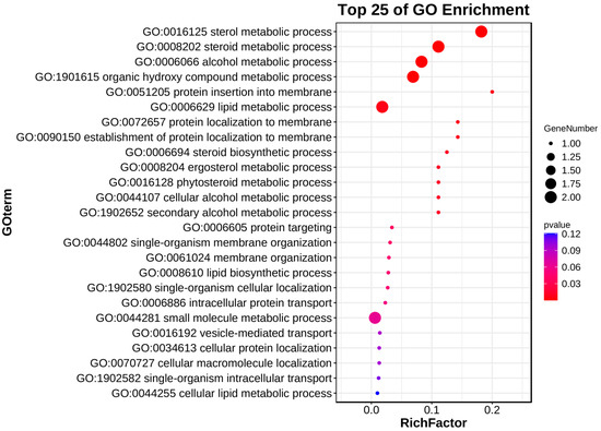 Gene ontology (GO) enrichment analysis helps to understand the function of genes by comparing protein sequences with known functions of species proteins, and ThCYP family genes are enriched here (Figure 4 and Table S3). The GO enrichment analysis results showed that ThCYP2, ThCYP3, and ThCYP20 enriched in the metabolic process (GO:0008152). ThCYP2 and ThCYP20 also enriched in the sterol metabolic process (GO:0016125), steroid metabolic process (GO:0008202), alcohol metabolic process (GO:0006066), organic hydroxy compound metabolic process (GO:1901615), and lipid metabolic process (GO:0006629). The conclusion drawn from these findings is that some ThCYP genes may play a role in the metabolic process, especially in sterol metabolism, which further affects fungal drug resistance, pathogenicity, and biological adaptability.