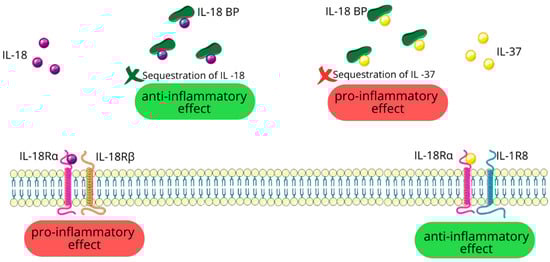 Interestingly, IL-18BP also has an affinity for IL-37. This interaction between IL-18BP and IL-37 potentially sequesters IL-37, thereby reducing its availability for anti-inflammatory signaling [16]; see Figure 6.