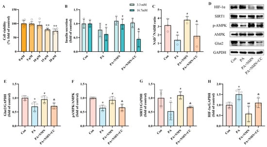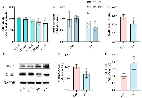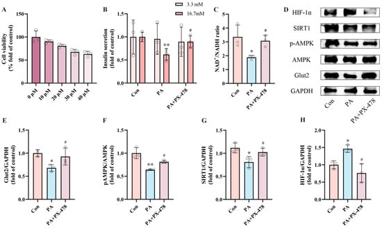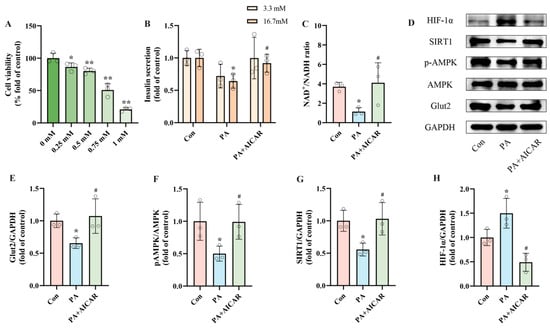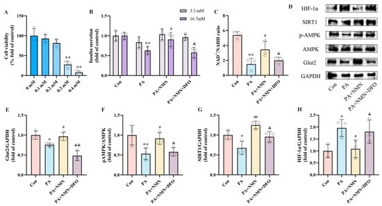2.4. PA-Induced Pancreatic β-Cell Dysfunction Is Related to NAD+/AMPK/SIRT1/HIF-1α Signaling Pathway
