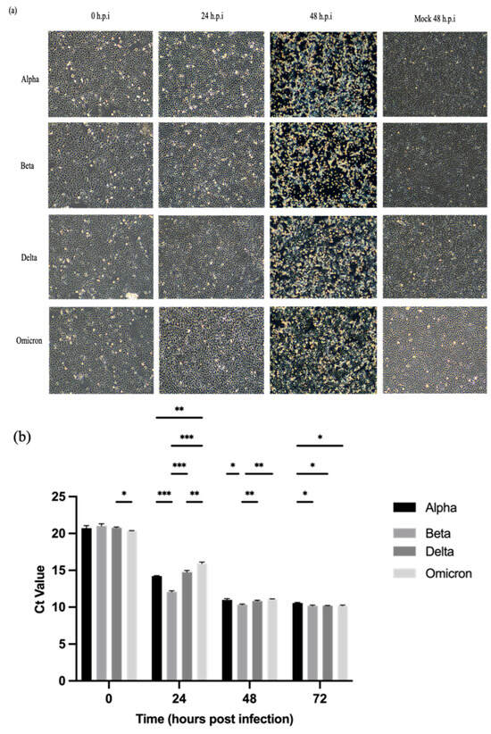 APA StyleMohd Zawawi, Z., Kalyanasundram, J., Mohd Zain, R., Mat Ripen, A., Basri, D. F., & Yap, W. B. (2024). Insights into the Replication Kinetics Profiles of Malaysian SARS-CoV-2 Variant Alpha, Beta, Delta, and Omicron in Vero E6 Cell Line. International Journal of Molecular Sciences, 25(19), 10541. https://doi.org/10.3390/ijms251910541