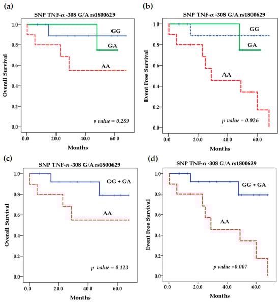 | SNP -238 G/A rs361525 n = 27 (%) | SNP -308 G/A rs1800629 n = 27 (%) | |||