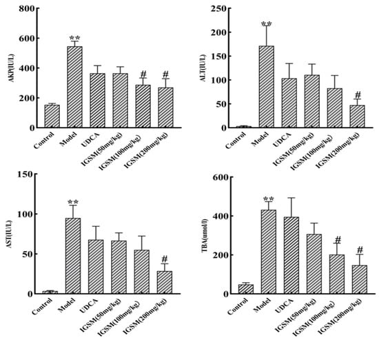 2.1. Effects of IGSM on ANIT-Induced Liver Injury in Rats