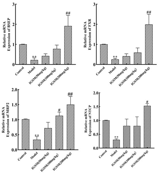 4.6. Effects of IGSM on Fxr, Ntcp, Bsep, and Mrp2 mRNA Levels