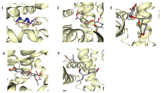 | 4: Mangiferin | 5,281,647 | −9.0 | ||