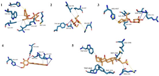 | 5 | MET-290, PHE-329, ARG-331, LEU-348, TRP-454, and TRP-469 | ARG-331 | - |