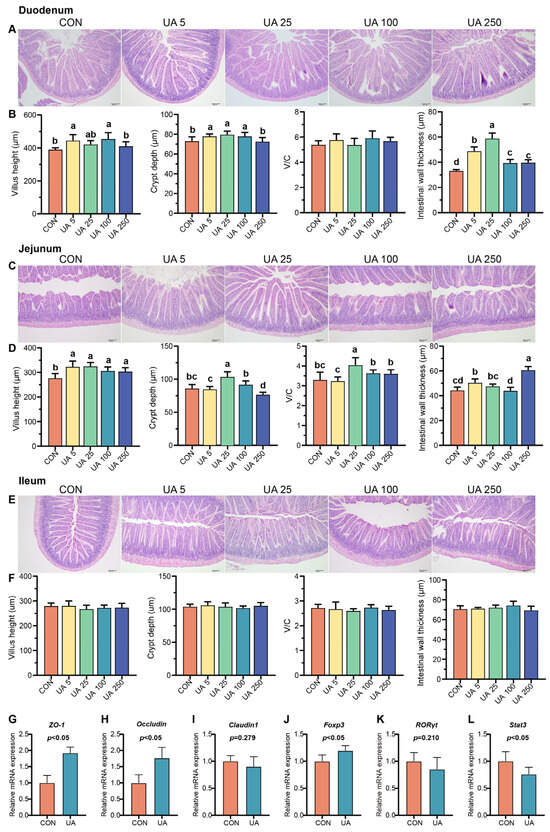 2.2. UA Promotes Intestinal Development, Intestinal Epithelial Barrier Integrity, and Immune Balance in Mice