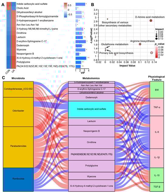 2.5. UA Treatment Alters the Gut Microbiota and Its Metabolic Characteristics and Affects the Host Phenotype