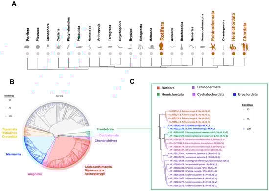 Wang, Q.; Yuan, Z.; Xu, H.; Chen, Y.; Sun, L. The Evolution and Biological Activity of Metazoan Mixed Lineage Kinase Domain-Like Protein (MLKL). Int. J. Mol. Sci. 2024, 25, 10626. https://doi.org/10.3390/ijms251910626