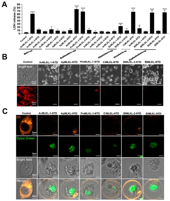 2.4. Necroptosis-Inducing Abilities of Invertebrate MLKL