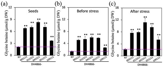 - Alia; Hayashi, H.; Sakamoto, A.; Murata, N. Enhancement of the Tolerance of to High Temperatures by Genetic Engineering of the Synthesis of Glycinebetaine. Plant J. 1998, 16, 155–161. [Google Scholar] [CrossRef] [PubMed]
