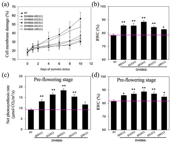 2.6. Drought Treatment of Maize Transgenic Lines at the Pre-Flowering and Heading Stages