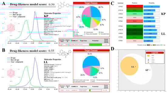 Bioinformatic analysis of pharmacological and toxicological properties of KP and LL.