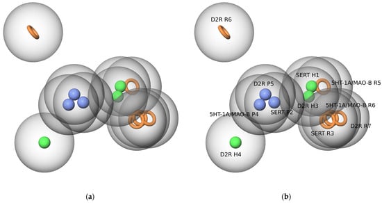 50 ≤ 100 nM in human SERT inhibition in assays published in 2020 and later, then conducted pharmacophore-based ligand screening using the model proposed by the Phase module (