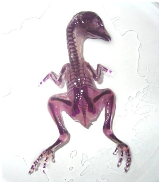 A skeleton-stained control embryo without deformities on day 19 of hatching is presented in Figure 3.