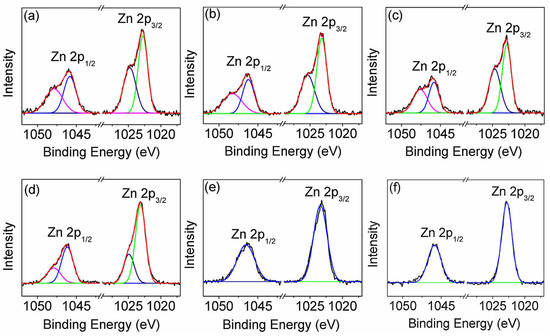 Expanded Zn 2p XPS spectra of various DMC catalysts: (a) DMC-AA prepared at 50 °C, (b) DMC-MAA prepared at 50 °C, (c) DMC-EAA prepared at 90 °C, (d) DMC-TBAA prepared at 70 °C, (e) DMC-34HD prepared at 50 °C, and (f) DMC-25HD prepared at 50 °C. For CA abbreviations, see Scheme 3. Reprinted with permission from [52]. Copyright (2019) Elsevier B. V., Amsterdam, The Netherlands.
