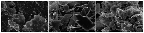 SEM images enlarged by a magnitude of 20,000 of different Zn/Co DMCCs that were gifts from industry. Reprinted with permission from [104]. Copyright (2024) Royal Society of Chemistry, London, UK.