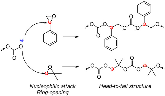 The mechanism of copolymerization of PO and CO2 is not yet clear. The microstructure of copolymers clearly indicates the absence of anhydride fragments, since insertion of CO2 at Zn–OC(O)R is thermodynamically forbidden [118]. The growth of a copolymer chain includes subsequent coordination and insertion of oxirane and CO2 molecules. The degree of introduction of CO2 FCO2, determined as a fraction of carbonate fragments relative to the total number of ether and carbonate units, is an important characteristic of PEC; for polycarbonates (PC) FCO2 = 100%.