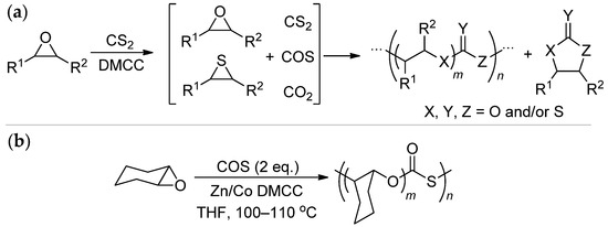 - Luo, M.; Zhang, X.-H.; Du, B.-Y.; Wang, Q.; Fan, Z.-Q. Alternating copolymerization of carbonyl sulfide and Cyclohexene Oxide catalyzed by zinc–cobalt double metal cyanide complex. Polymer 2014, 55, 3688–3695. [Google Scholar] [CrossRef]