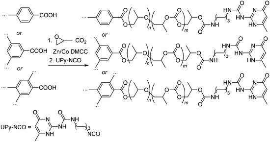 - Liu, S.; Miao, Y.; Qiao, L.; Qin, Y.; Wang, X.; Chen, X.; Wang, F. Controllable synthesis of a narrow polydispersity CO2-based oligo(carbonate-ether) tetraol. Polym. Chem. 2015, 6, 7580–7585. [Google Scholar] [CrossRef]