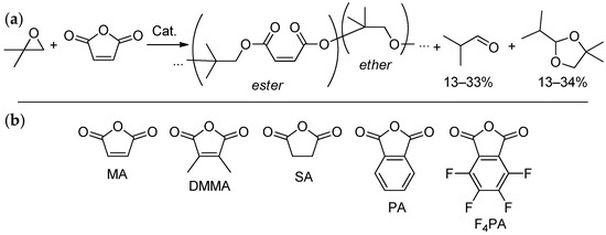 - DiCiccio, A.M.; Coates, G.W. Ring-Opening Copolymerization of Maleic Anhydride with Epoxides: A Chain-Growth Approach to Unsaturated Polyesters. J. Am. Chem. Soc. 2011, 133, 10724–10727. [Google Scholar] [CrossRef] [PubMed]