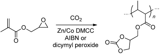 - Liu, B.; Zhang, Y.-Y.; Zhang, X.-H.; Du, B.-Y.; Fan, Z.-Q. Fixation of carbon dioxide concurrently or in tandem with free radical polymerization for highly transparent polyacrylates with specific UV absorption. Polym. Chem. 2016, 7, 3731–3739. [Google Scholar] [CrossRef]