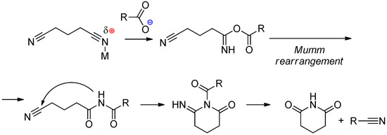 - Marquez, C.; Corbet, M.; Smolders, S.; Marion, P.; De Vos, D. Double metal cyanides as heterogeneous Lewis acid catalysts for nitrile synthesis via acid-nitrile exchange reactions. Chem. Commun. 2019, 55, 12984–12987. [Google Scholar] [CrossRef] [PubMed]
