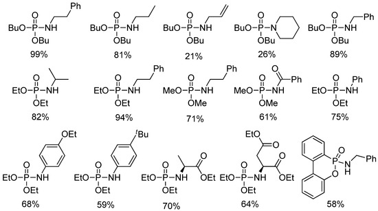 - Fonseca, A.; Bugaev, A.L.; Pnevskaya, A.Y.; Janssens, K.; Marquez, C.; De Vos, D. Copper–cobalt double metal cyanides as green catalysts for phosphoramidate synthesis. Commun. Chem. 2023, 6, 141. [Google Scholar] [CrossRef] [PubMed]