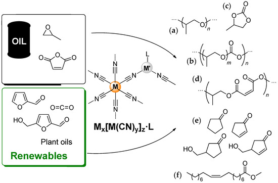 Commodity, energy, and environmental concerns drive scientists to develop contemporary approaches to new materials, based on the methods of green chemistry and utilization of wastes and greenhouse gases; improving the efficiency of oil processing is also on the agenda [1,2,3]. Among new-old catalytic systems, widely used earlier for conversion of petroleum-based monomers to in-demand polymer materials and that have received new life in chemical fixation of CO2 [4], double metal cyanide (DMC) complexes hold a special place among heterogeneous catalysts [5].