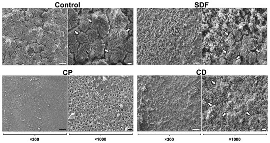4.3. Morphological Observation Using Scanning Electron Microscopy