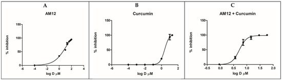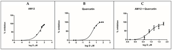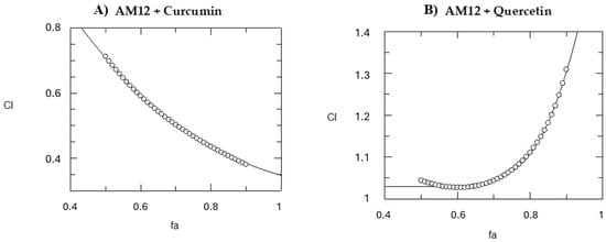 0.80 | 80% | AM12 + Curcumin | 0.43 | Synergism | AM12 + Quercetin | 1.11 | Slight antagonism |